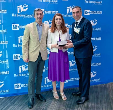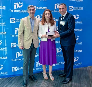 Este reconocimiento, en palabras exactas del Miami Beacon Council, lo hemos recibido por "impulsar el desarrollo en Miami, crear puestos de trabajo de alto valor, fortalecer la economía estadounidense y contribuir a construir un condado de Miami-Dade más inclusivo y competitivo".